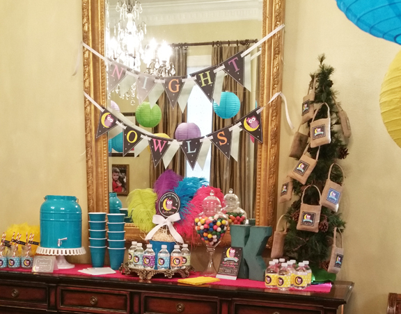 Wicked Water was available for the thirsty ghosts, goblins, and witches in attendance. Spooky images and sayings of witches, crows, “HAPPY halloween to you”, and “Wicked WATER” popped against the black and white stripe background.