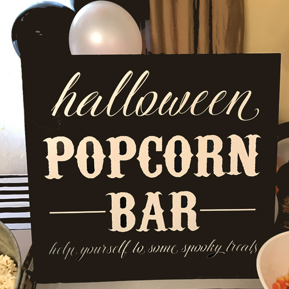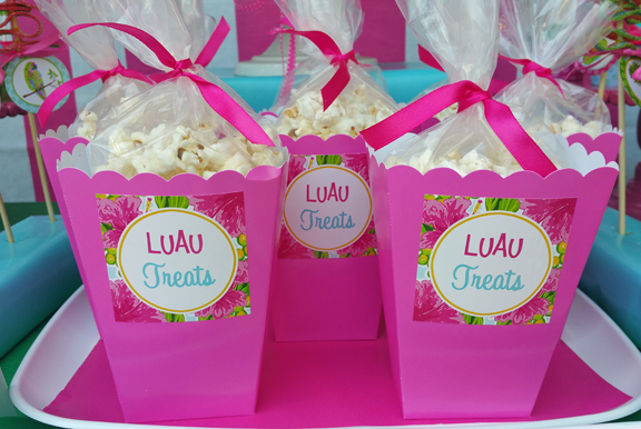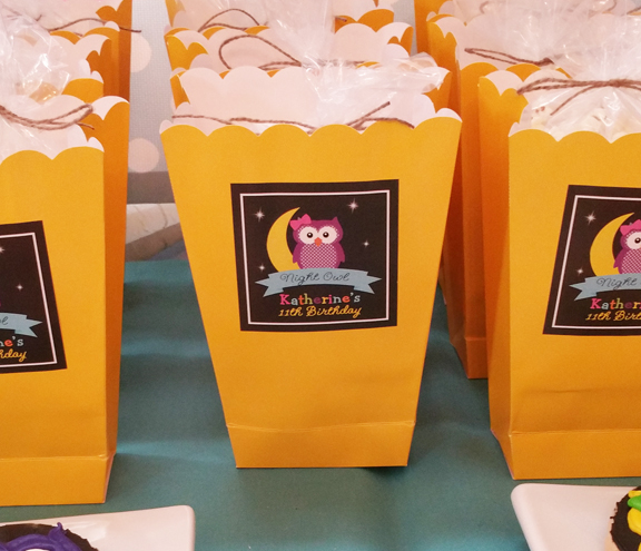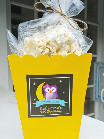 The refreshments table also included a popcorn bar where the kids could fill up their own popcorn boxes with an assortment of popcorn and treats.