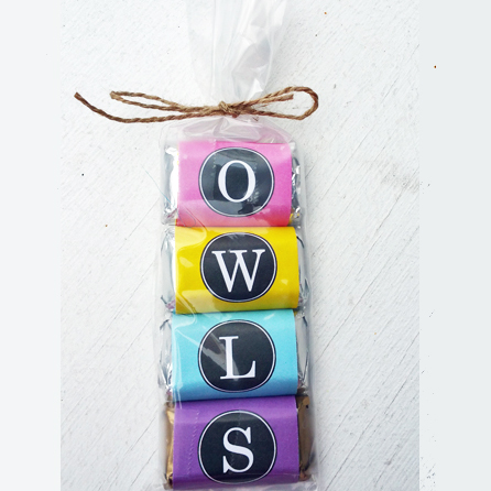 Miniature chocolates were wrapped in black and white and orange party papers! There were witches, spiders, skulls, gravestones, ravens, bats, and ghost images to choose from!