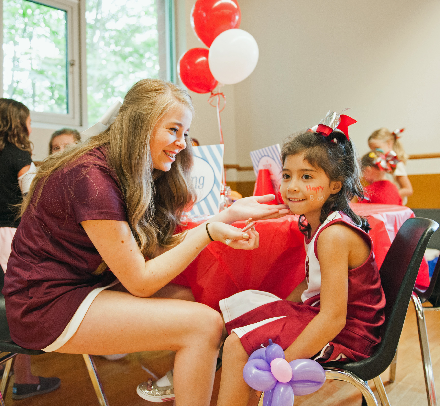High school cheerleaders taught the girls several cheers and they performed it for the parents! There were stations for face painting and cheer tattoos.