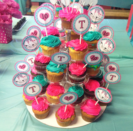 The cupcake tree was a colorful array of cupcakes and personalized cupcake toppers in celebration of the birthday girl!