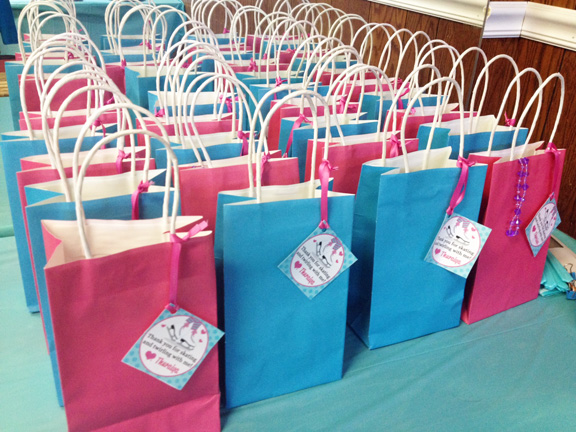 Thuraiya’s guests had a choice of pink or blue Goodie bags containing cold weather related items such as, "Thuraiya Hot Cocoa Mix", hand and foot warmers, ear muffs, gloves, and ice blades key chains...and of course, the traditional party items! Personalized favor tags thanked guests for coming!
