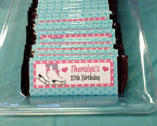 Candy wrappers created in keeping with the skating party theme made even the candy bars a special treat!