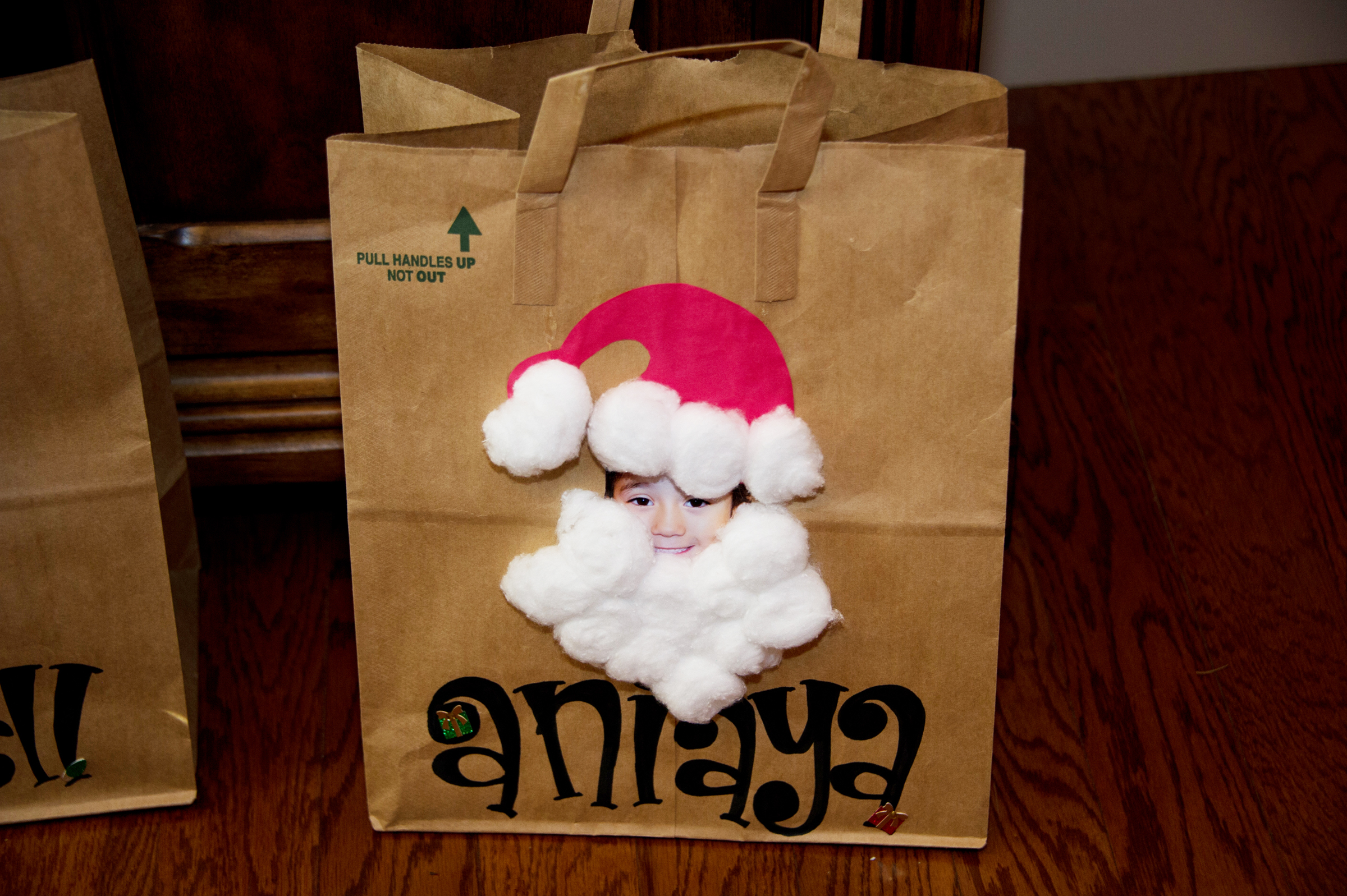 And last, but not least, the adorable favor bags provided an example of how a simple brown paper bag can turn into a work of art with the names and faces of the children having been decorated with cotton balls for Santa’s beard and fur on his red hat!