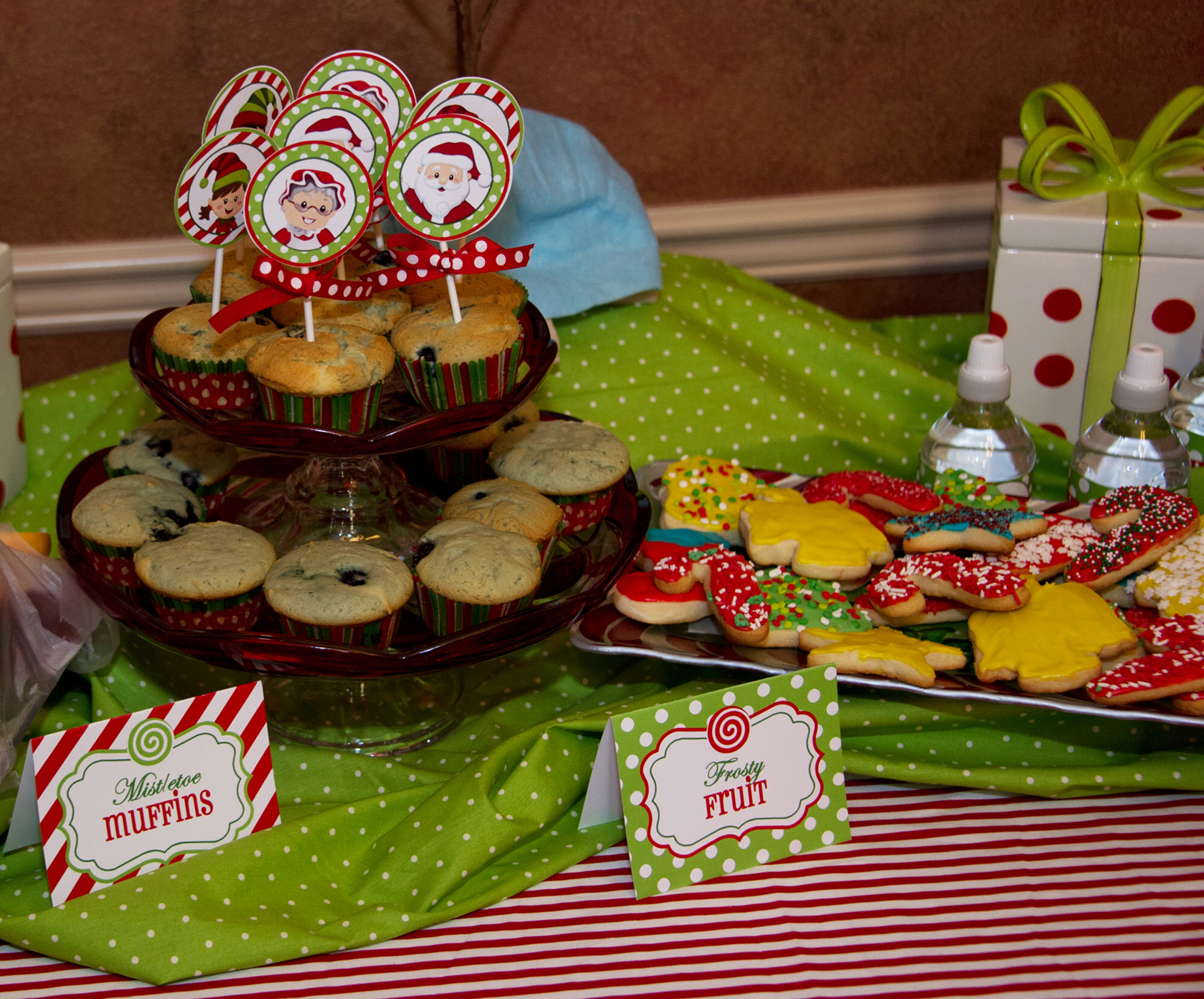 Santa’s little helpers feasted on Frosty Fruit, Mistletoe Muffins, and Christmas Cookies while watching the movie Polar Express. Cute muffin toppers provided a fun accent!
