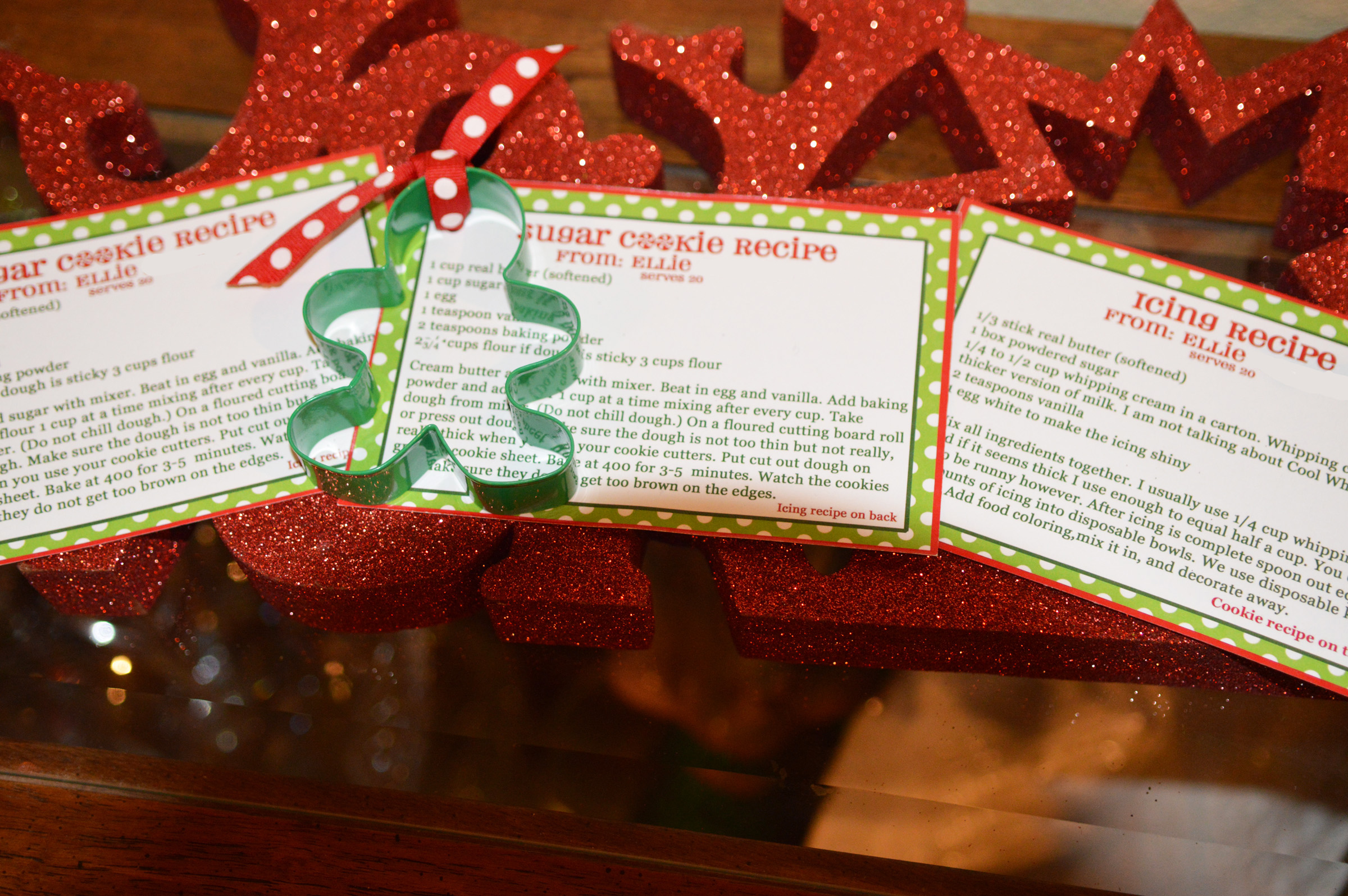 Cute recipe cards for the cookie dough were tied to cookie cutters as favors!