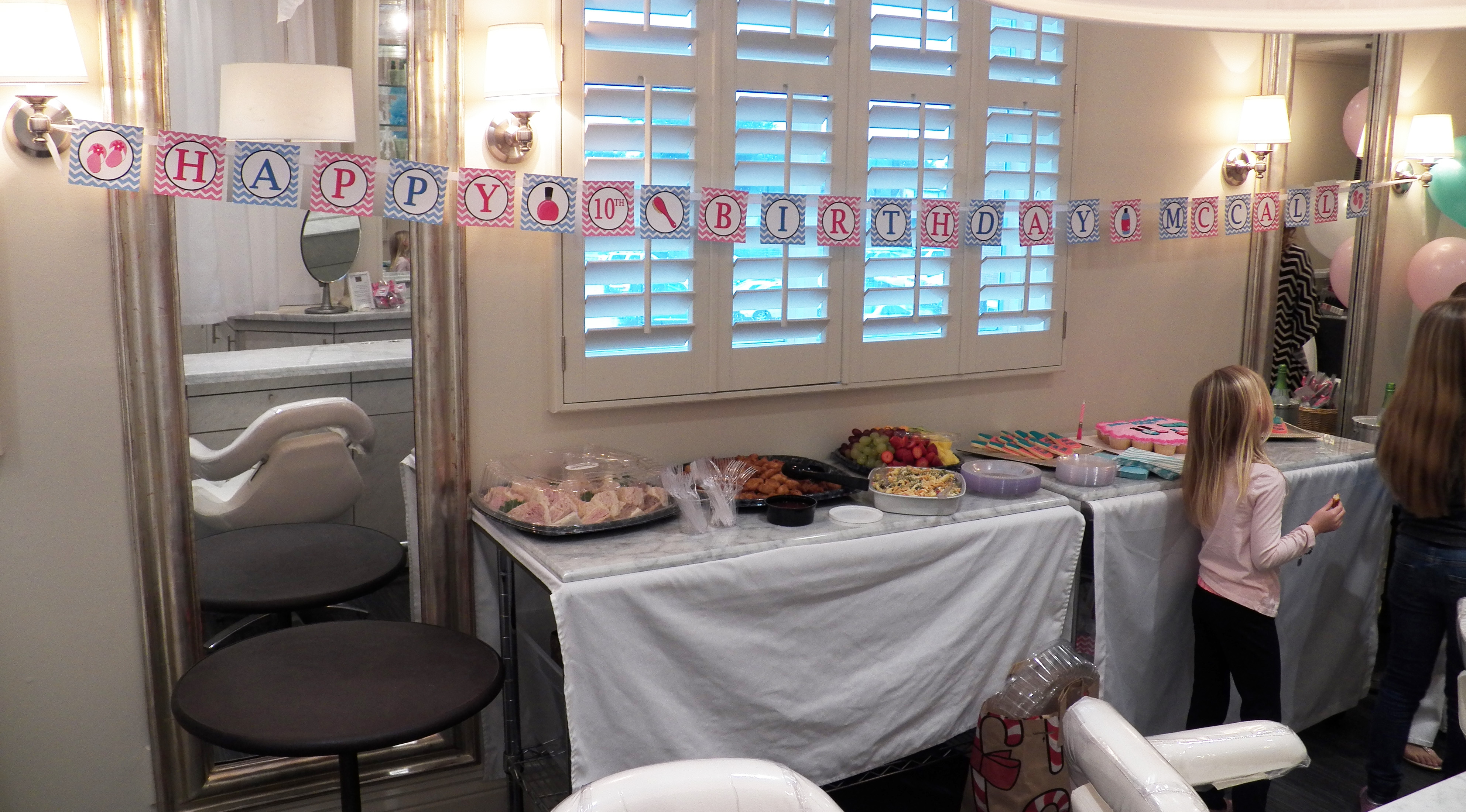 The Day Spa was decorated in pink and blue and included a chevron patterned birthday banner!