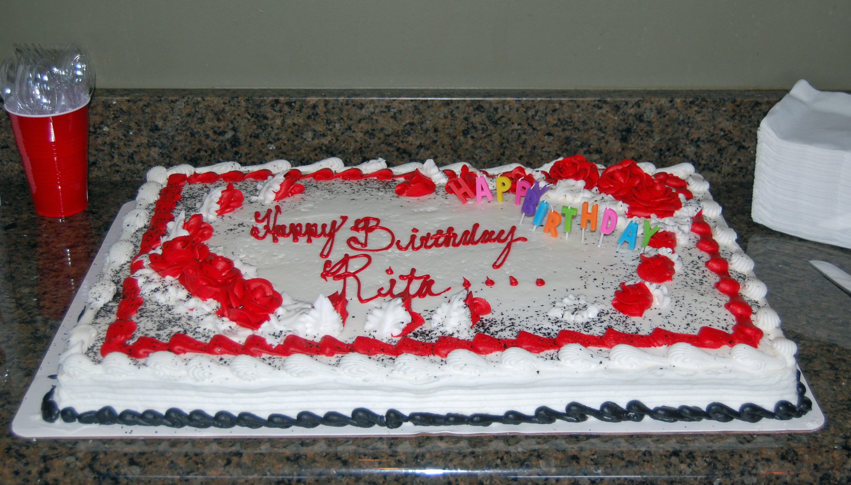 A huge banner was strategically displayed at the Chateau Cafe with Happy Birthday Wishes for Rita!