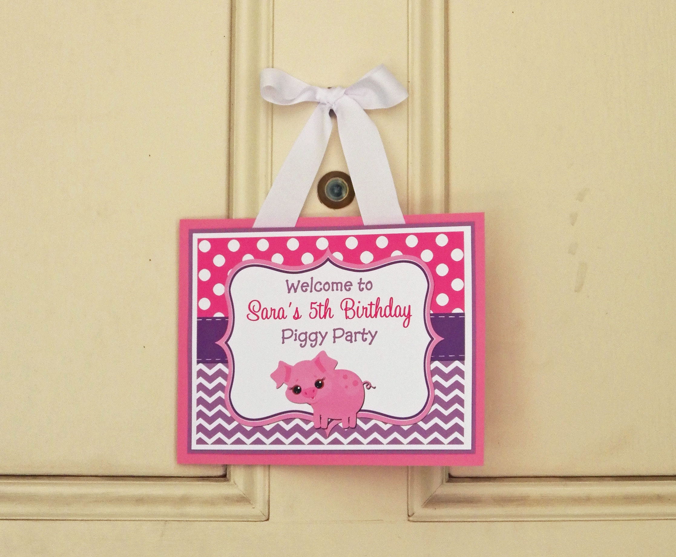 Friends and family must have been excited to knock on the door with a piggy welcome sign!