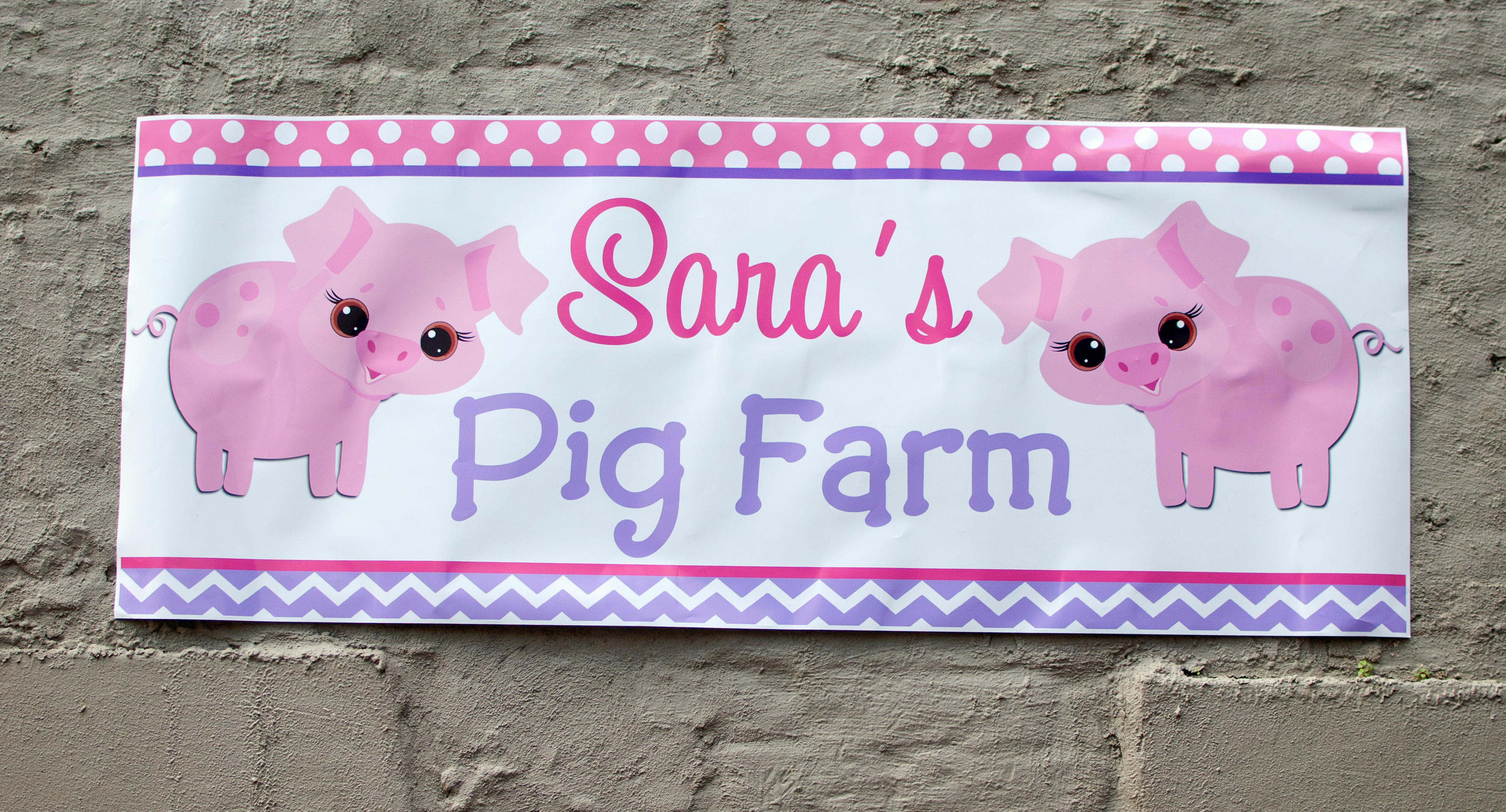 A big banner announcing “Sara’s Pig Farm” welcomed party guests!