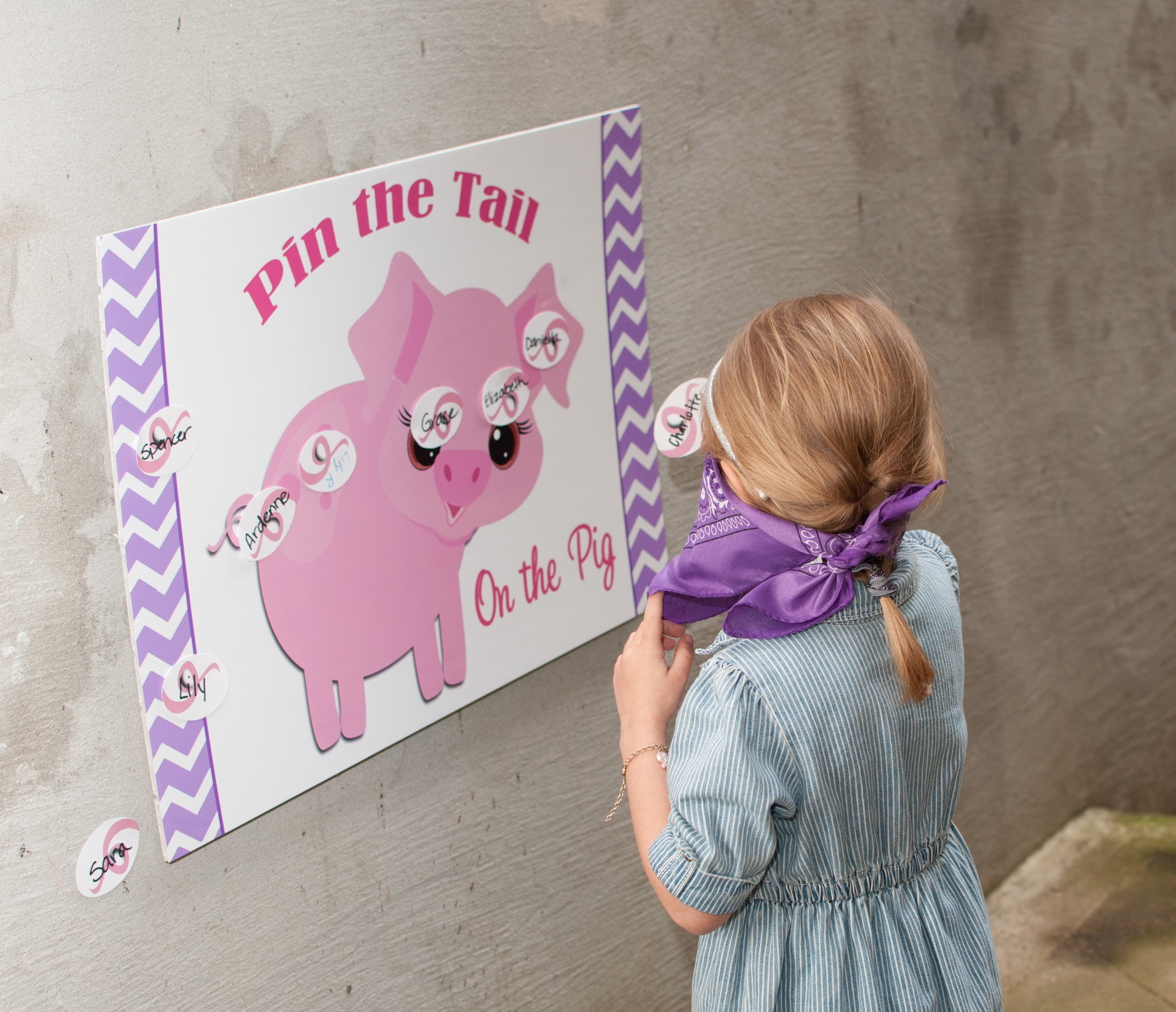 Pin the Tail on the Pig was a hit! The poster and curly tail stickers were designed especially for Sara’s party by That Party Chick.