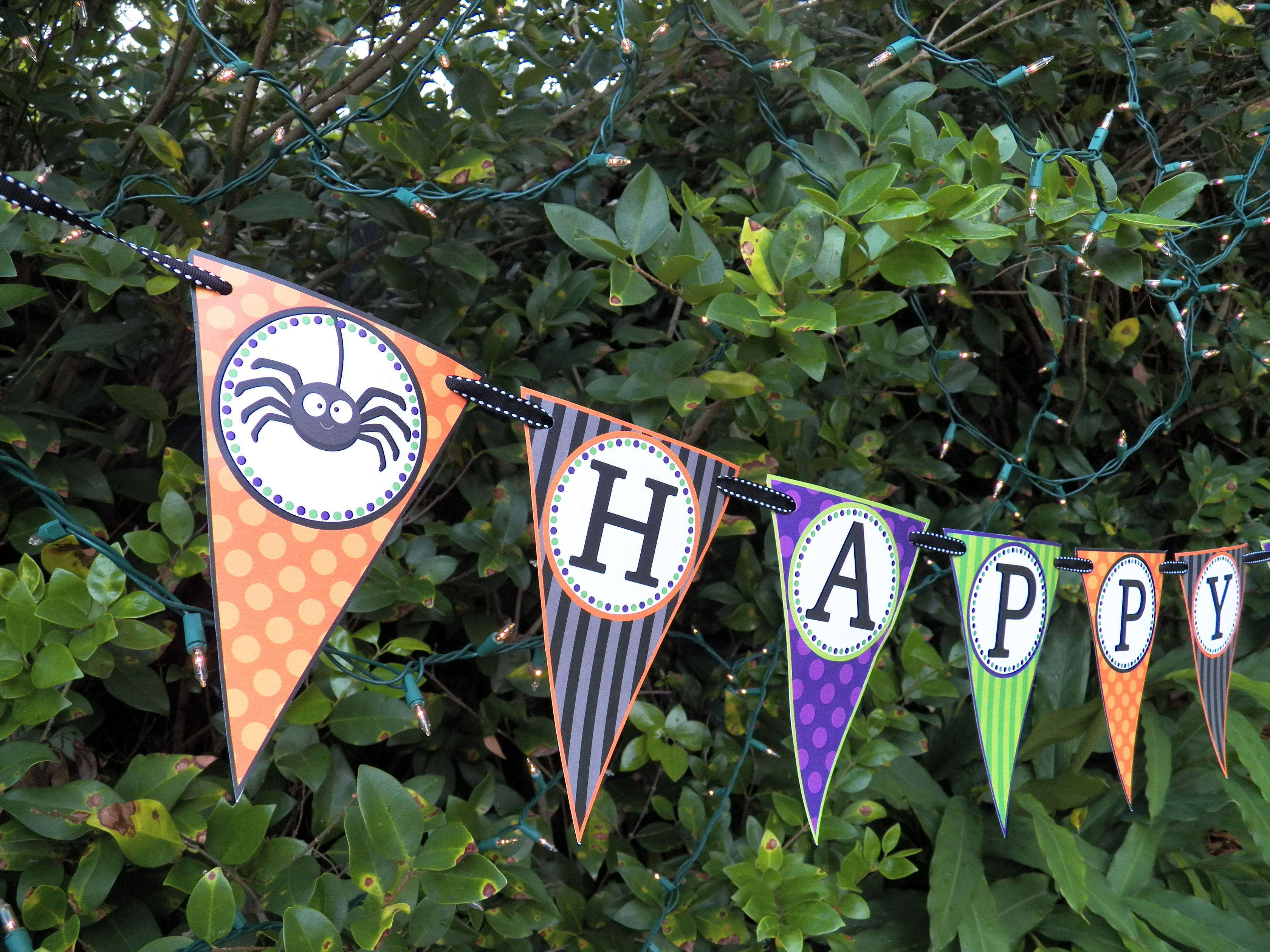 A “Happy Halloween” bunting banner strung on black ribbon waved gently in the breeze!