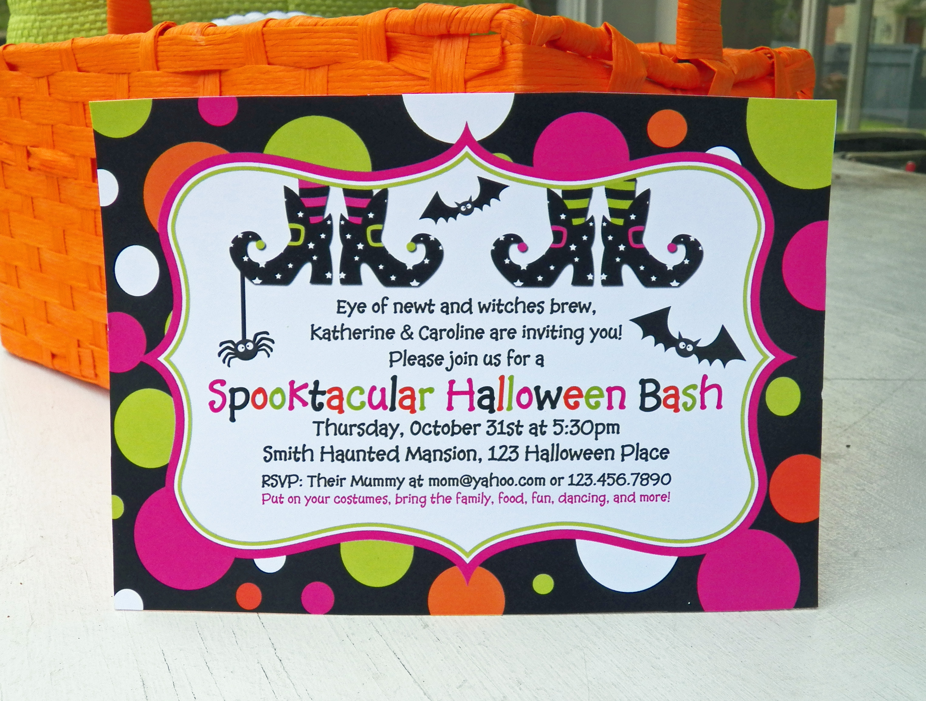 Eye of newt and whisker of cat, Leg of spider, and wing of bat! The witches’ brew is almost done, It’s Halloween, let’s have some fun! Kids were excited from the start with this invitation from Katherine and Caroline.