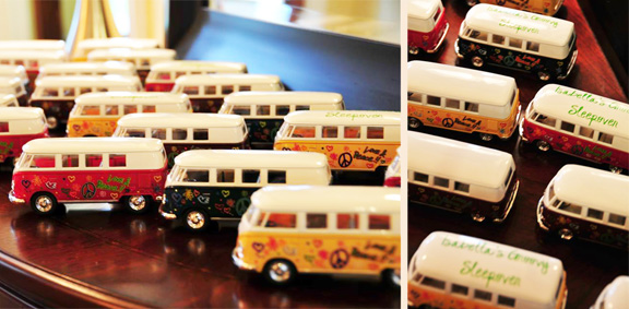 Favors included miniature classic Volkswagen vans so characteristic of the decade.