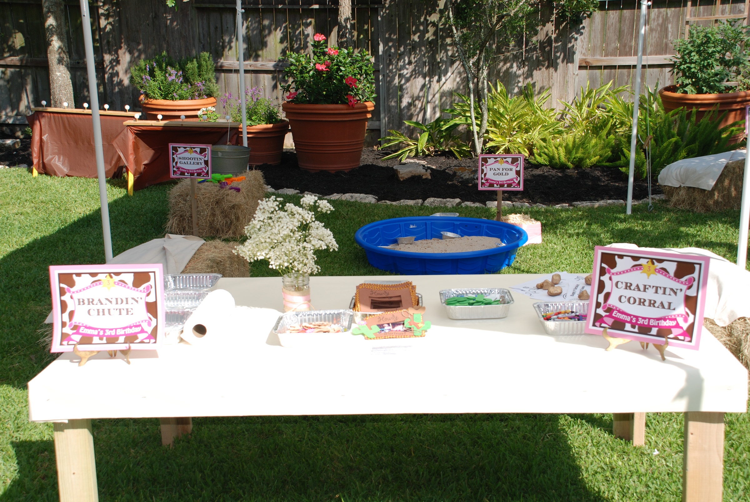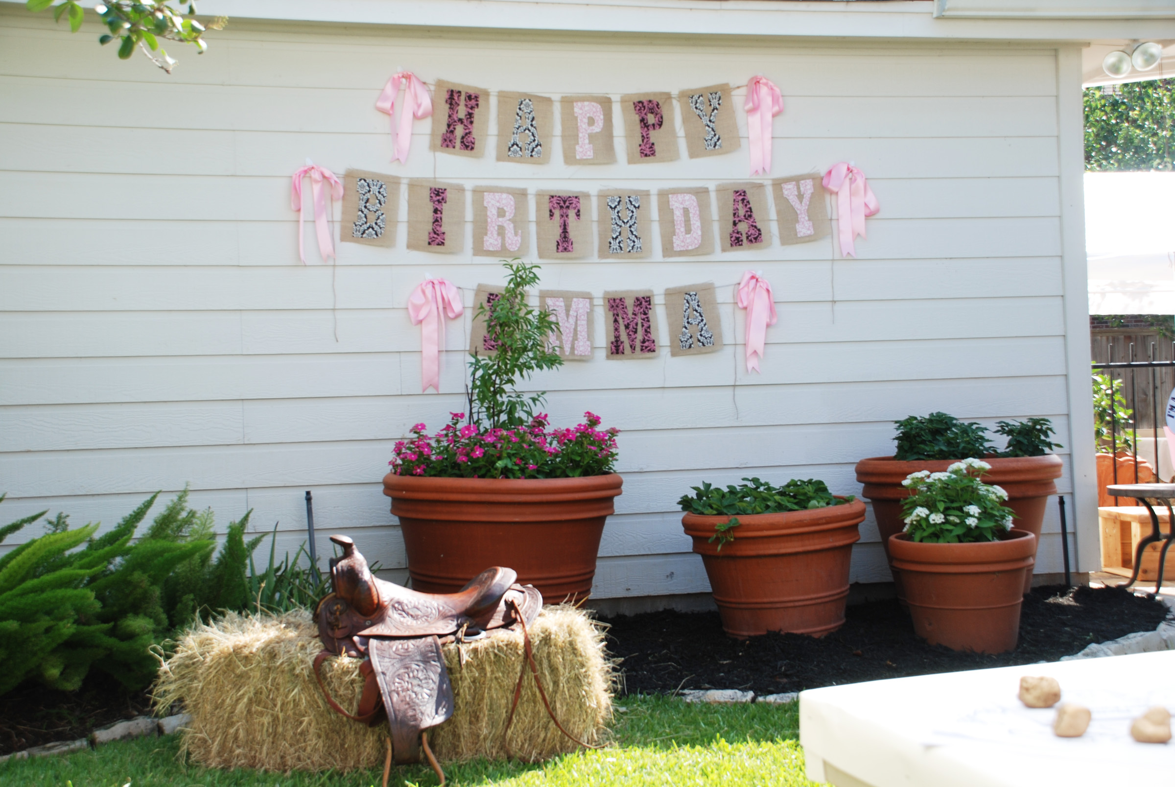Hay bales and saddles provided the perfect accents for this Western Themed Party. Splashes of pink and ribbons gave the party a distinctively girly touch!