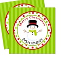 Snowman with Green Stripe Background 2.5" Christmas Gift Tags