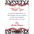 This black damask invitation with red accents is perfect for a milestone or surprise birthday party! You will receive a 5x7” invitation with wording of your choice. The invitation can be ordered printable to print yourself or printed and shipped. Select using the "Invitation Order" drop down menu.